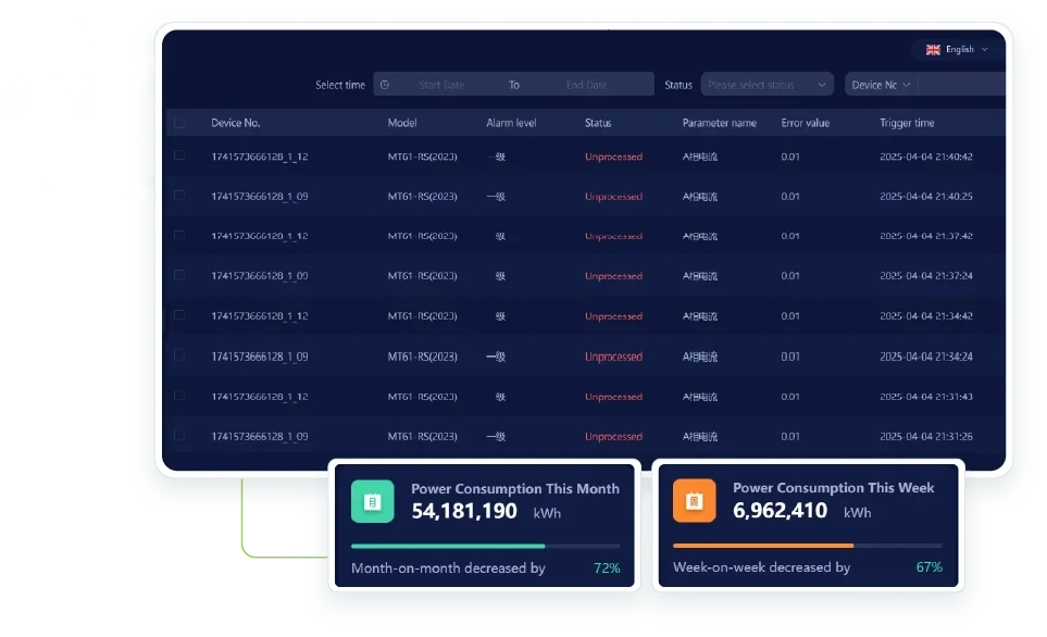 Specifically engineered for the MT61GP Smart Circuit Breaker, our device management platform delivers an all-in-one solution for electrical safety, energy metering, and power management. By using this device management platform, businesses can monitor professional electrical data in real time while maintaining access to detailed historical records across multiple devices.